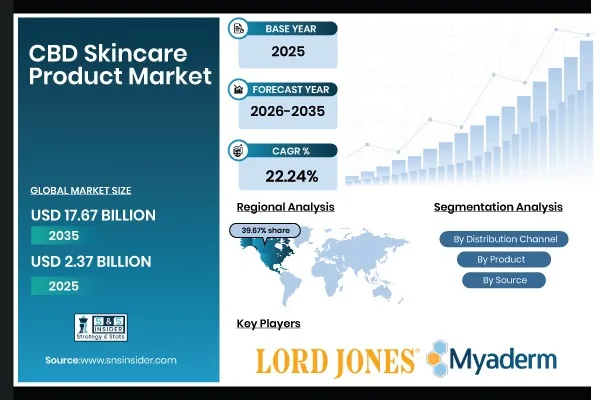 The global market for CBD-infused skincare products is expected to grow sharply over the next decade, reaching $17.67 billion by 2035, according to a new report from SNS Insider. The market is estimated at $2.37 billion in 2025 and is projected to expand at a compound annual growth rate of 22.24% through 2035.