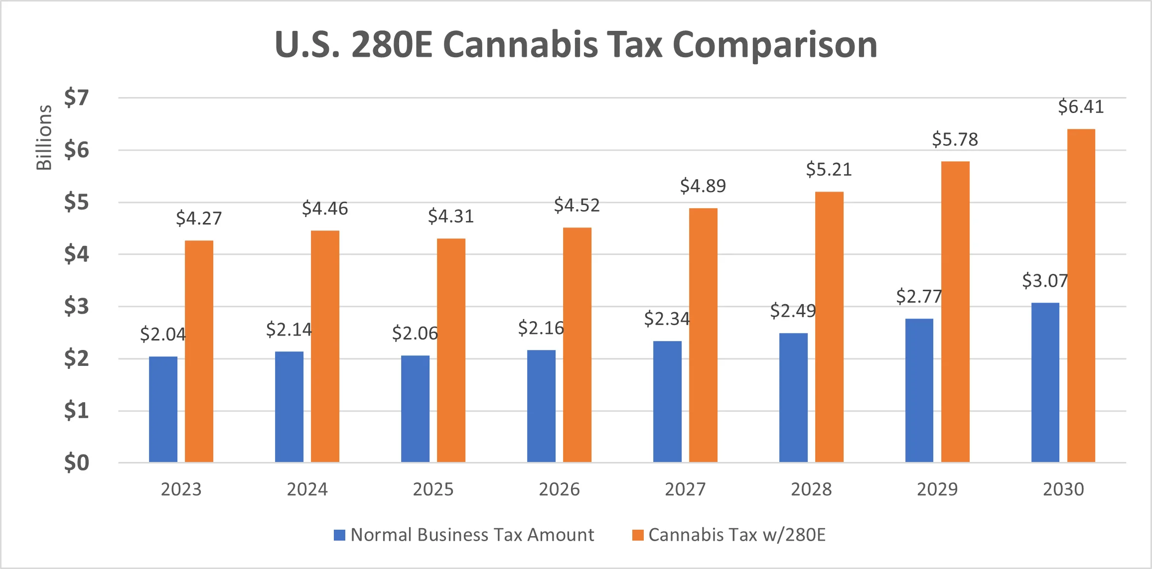 Whitney Economics says one of the biggest potential changes would come if marijuana is moved from Schedule I to Schedule III under the Controlled Substances Act. In that case, marijuana businesses would no longer be subject to 280E, allowing them to take standard deductions and substantially reduce their federal tax burden.